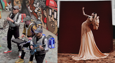 Electrostatiks est né de l’envie d’amener le son électro dans la rue, à la croisée du DJ et de la fanfare, mais avec un son résolument électro : un répertoire original, porté par un « marching band survitaminé ». Malin mélange d’instruments électroniques et acoustiques, le traitement du son en direct laisse la part belle aux samples, aux effets et aux loops : chaque scène ou coin de rue devient alors un dancefloor !