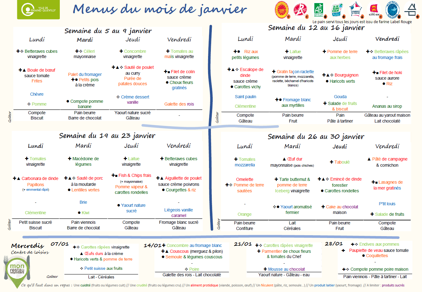 MENUS DU MOIS DE JANVIER