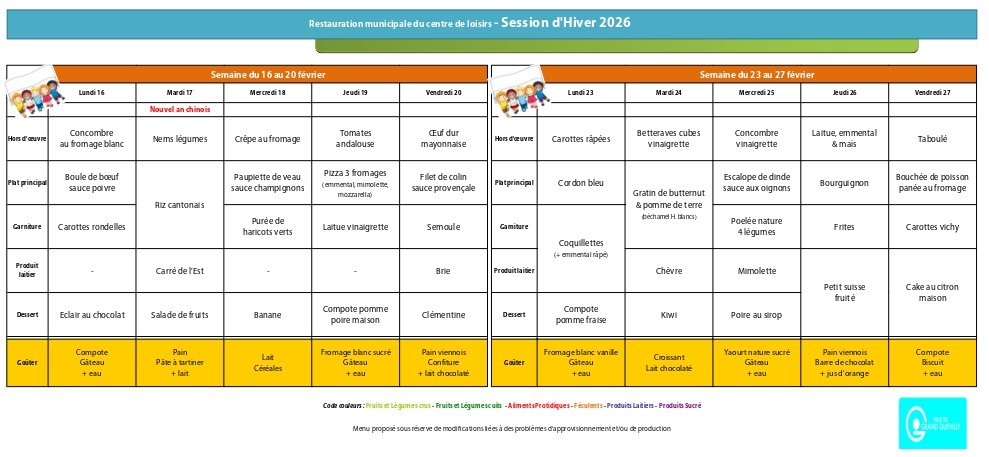 Menus écoles et centre de loisirs