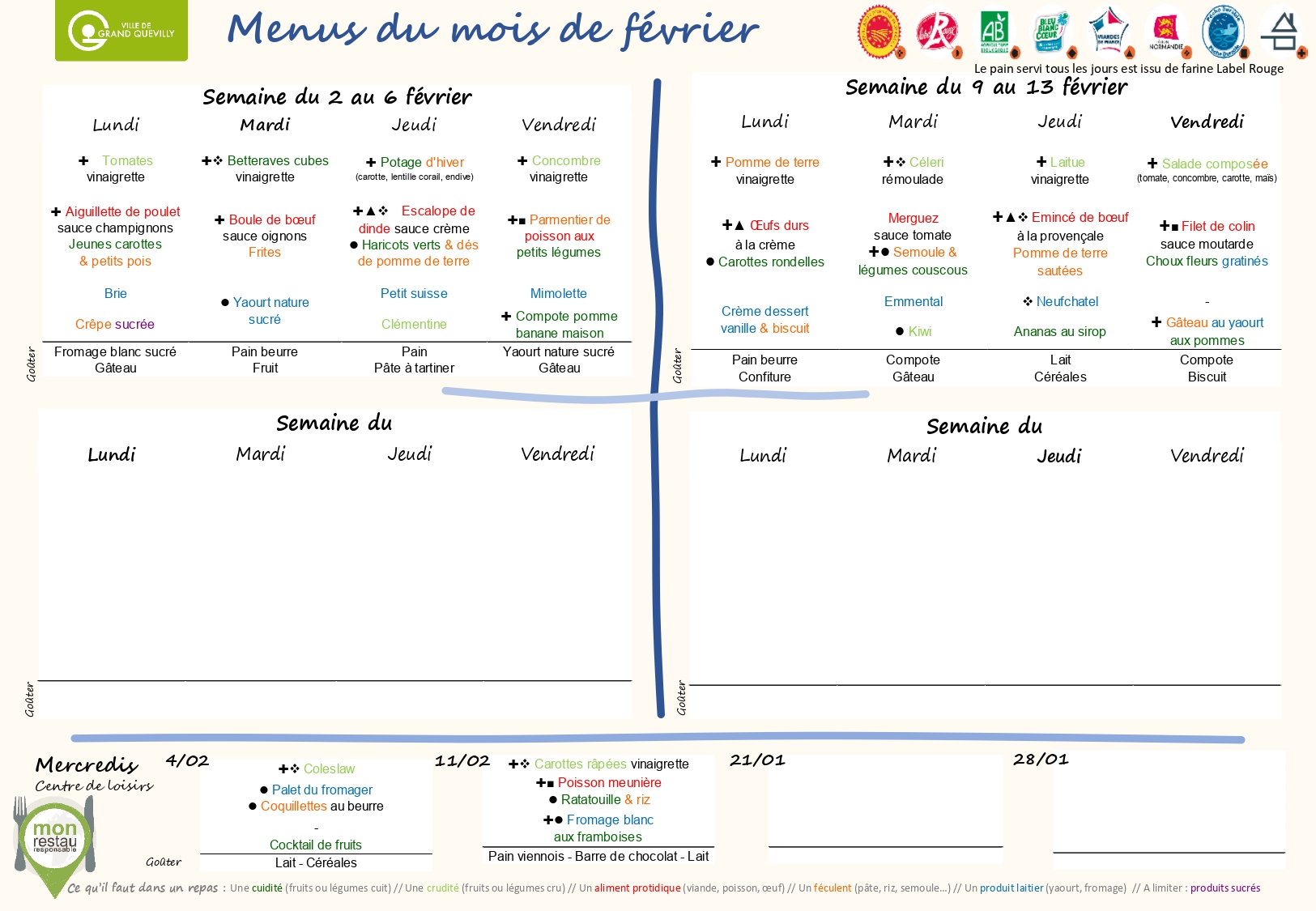 MENUS DU MOIS DE FÉVRIER