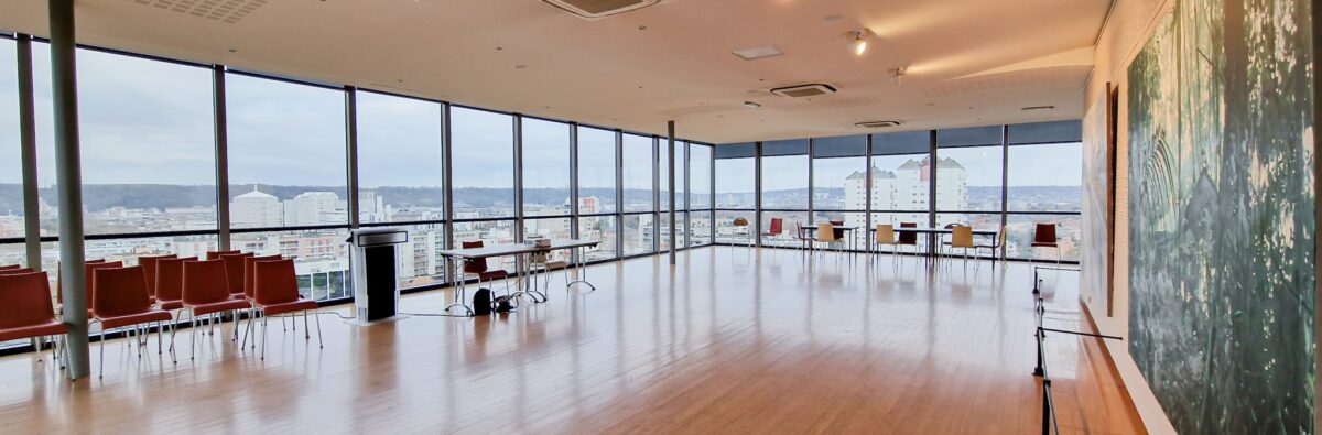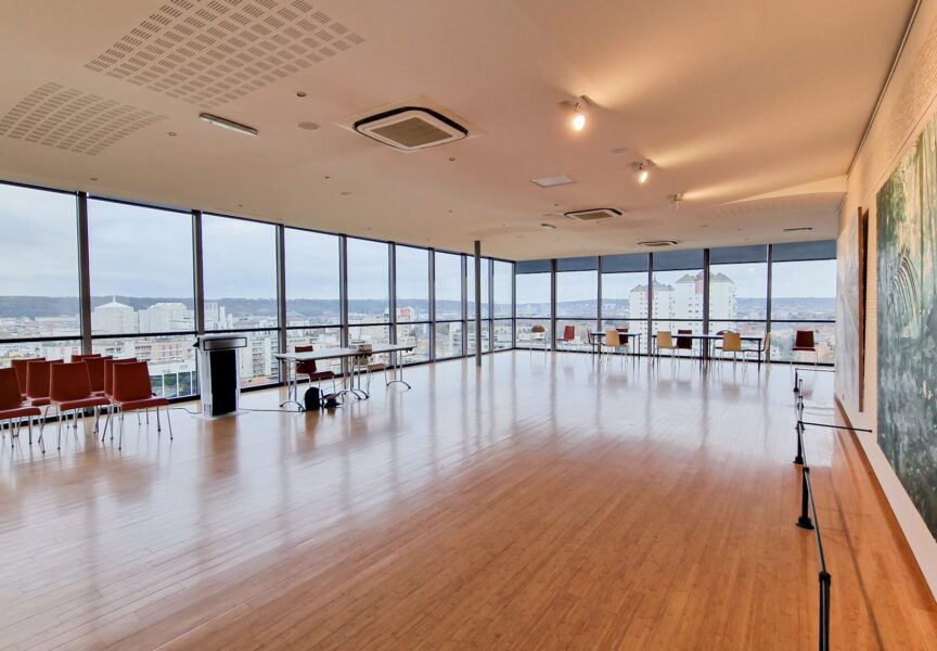 L’Hôtel de ville de Grand Quevilly dispose de quatre salles au neuvième étage dont une dotée d’une superbe vue, sur la métropole. L’étage complet (c’est-à-dire les quatre salles) est disponible à la location.